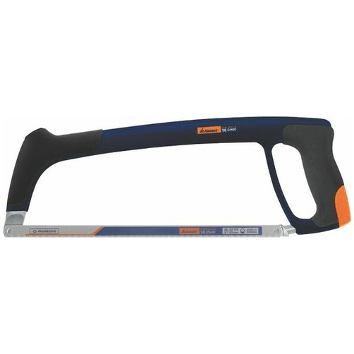 Hacksaw frame developed based on the latest ergonomic findings for non-fatiguing work with maximum cutting rates. Extremely lightweight, high strength two-component frame with anti-slip inserts for a secure grip. Blade tension up to 1000 N(100 kP) is easily achieved using the integral tensioning nut within the handle. Alternative blade setting at 55° for flush cutting. Overall length 395 mm.